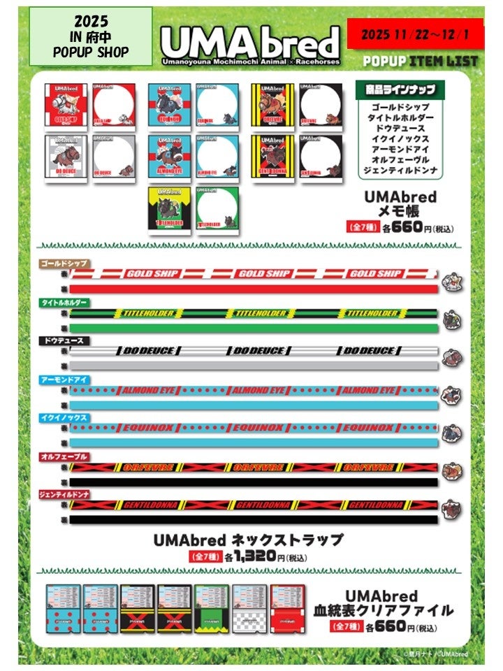 競走馬グッズブランド『UMAbred』が秋の中央競馬 東京開催にあわせてサテライトPOPUPを開催!11/22~武蔵府中ル・シーニュ2F GIGコート催事場 12/1まで!