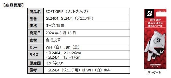 ブリヂストンスポーツ株式会社は、柔らかい風合いの手入れ感とフィット性を追求した『SOFT GRIP』を3月15日に発売します。価格はオープンです。