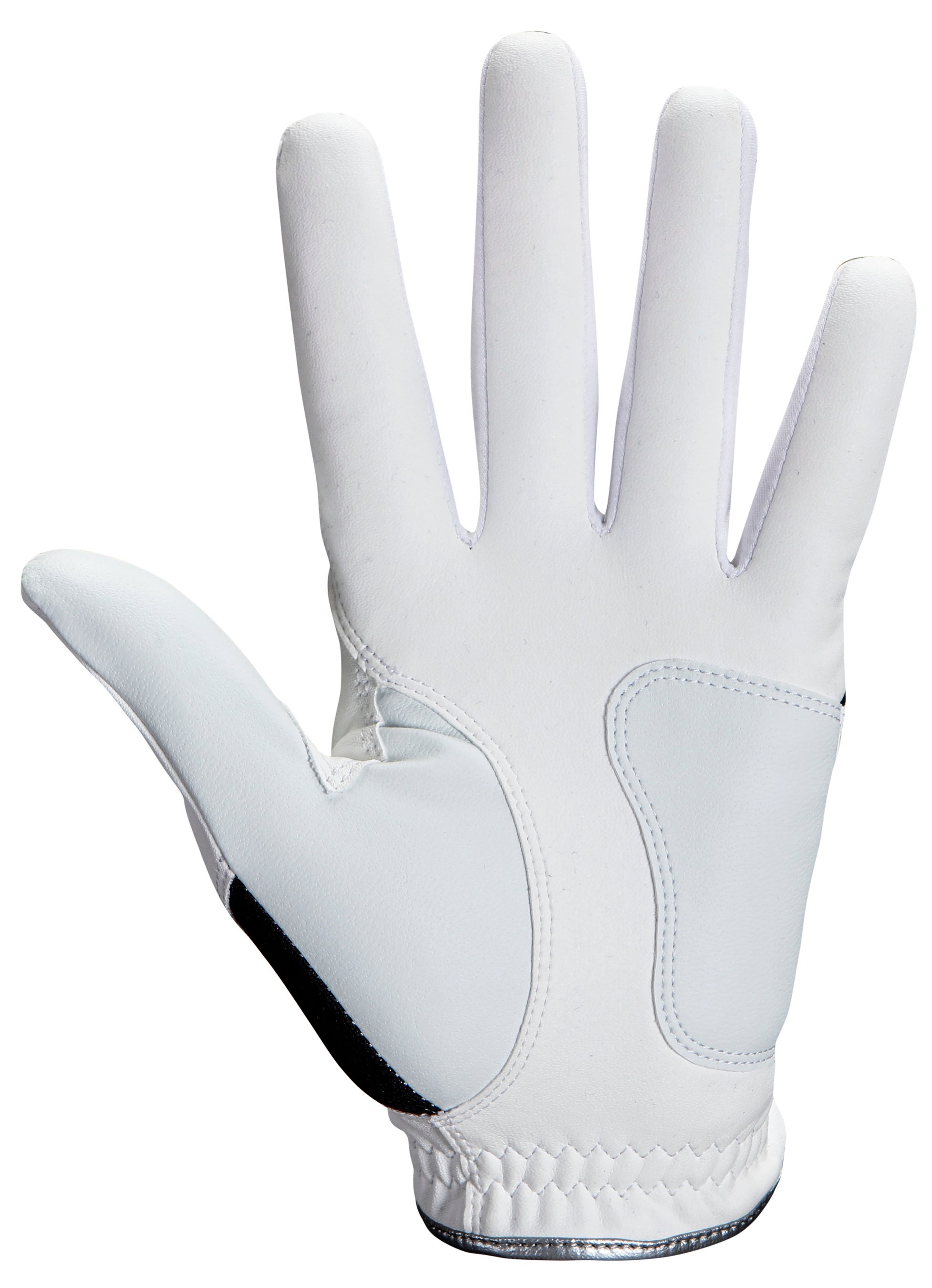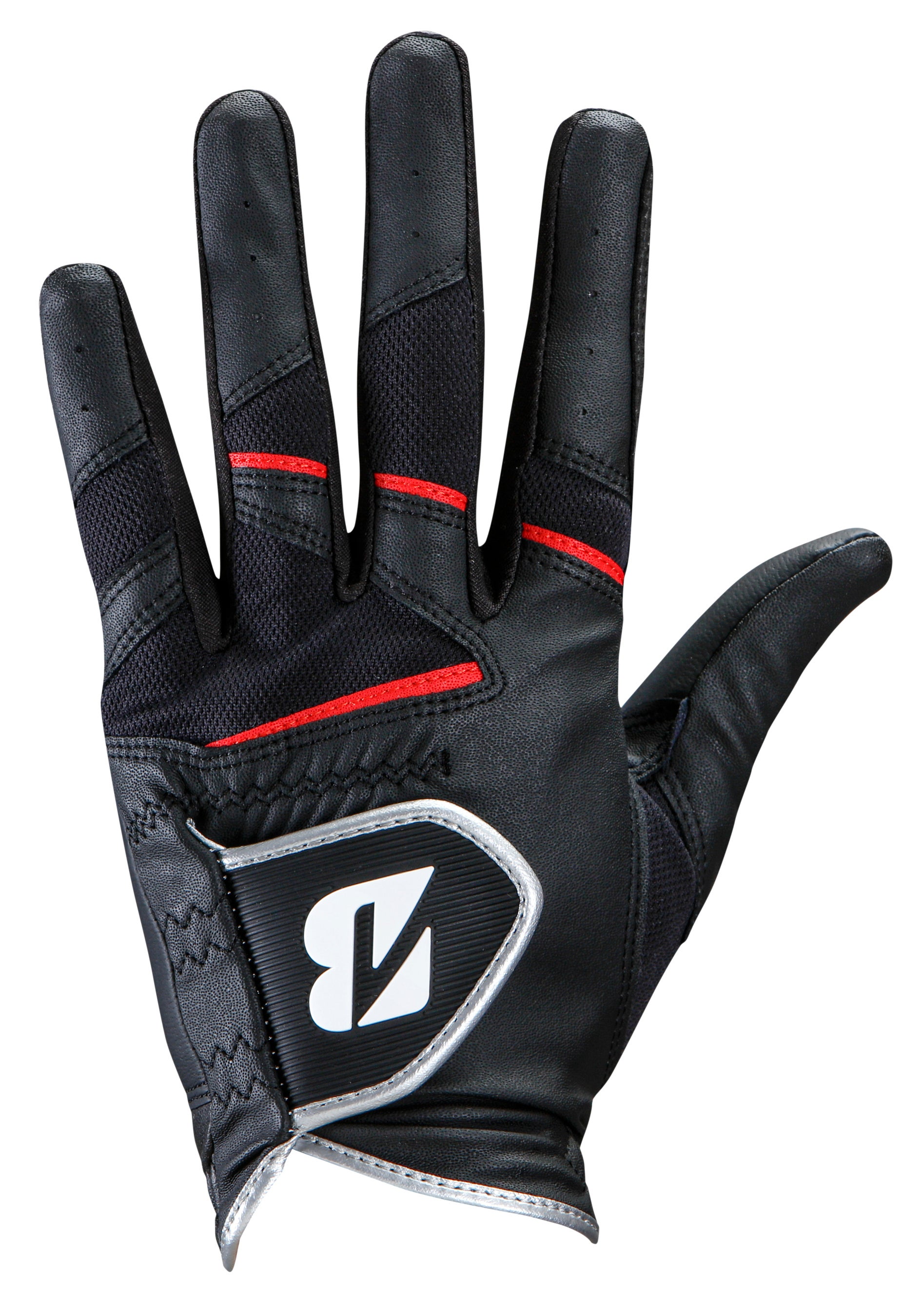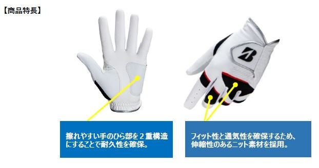 同商品は、手のひら側に「東レコーテックス社」の日本製合成皮革を使用し、発泡セル形成技術により、通気性とクッション性を兼ね備えながら、柔らかな風合いを実現しています。また、指・手の甲の屈曲部に伸縮性のあるニット素材を配置し、フィット性と通気性を確保するとともに、クラブのグリップエンドで擦れやすい手のひら部を2重構造にすることで耐久性も追求し、快適なプレーをサポートします。