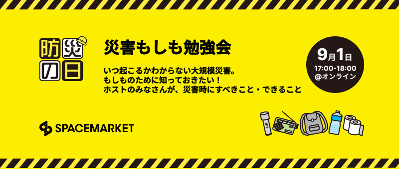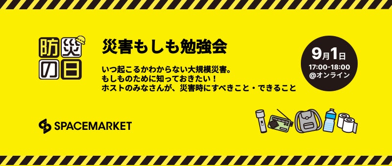 「災害支援パッケージ」本格開始にあわせて、9月1日(防災の日)には、スペースマーケットのホスト限定の勉強会も実施。JVOADより、災害支援の専門家をゲストにお呼びします。平時から災害時に向けてできることを考える機会をもつことで、地域で支え合える世の中に向けて取り組んでまいります。