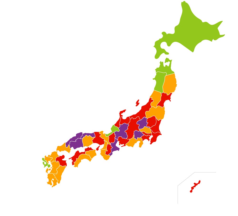 5月7日は九州地方を除いて天候は雨でしたが、9日には一部地域を除いて全国的に晴れました。