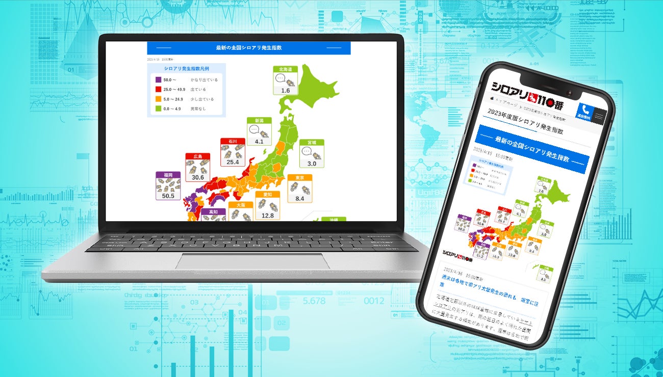 ※2023年4月4日時点での当社調べに基づき、シロアリ情報提供サイトにおいて「直近のシロアリ発生数を数値化して公開・更新するサービス」が【日本初】として表示しているものとなります。