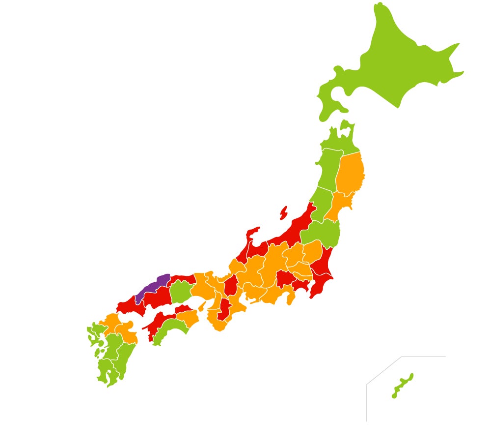 関東地方から関西地方を中心に指数が増加していることがよくわかります。