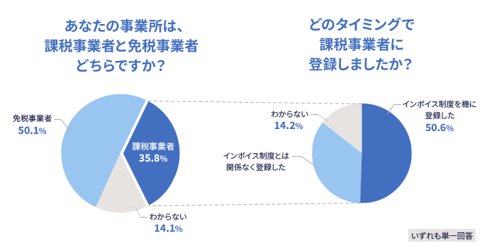 ・調査に回答した課税事業者のうち、50.6%が「インボイス制度を機に登録」と回答