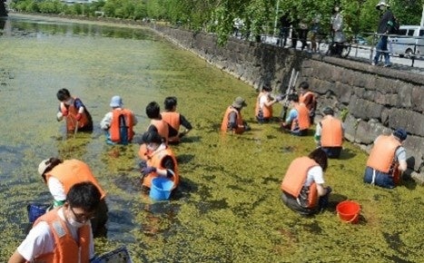 皇居のお濠の貴重な水草に着目した取り組みである「濠プロジェクト」では、かつてお濠に生息し、現在は消失してしまった水草の系統保全と、泥に種子が眠っている可能性のある水草の復元に挑戦しています。昨年度に引き続き今年度も、皇居外苑と大丸有エリアの生物多様性について学び、考えることを目的に、実際にお濠に入って泥と生きものの採取、観察イベントを実施予定です。