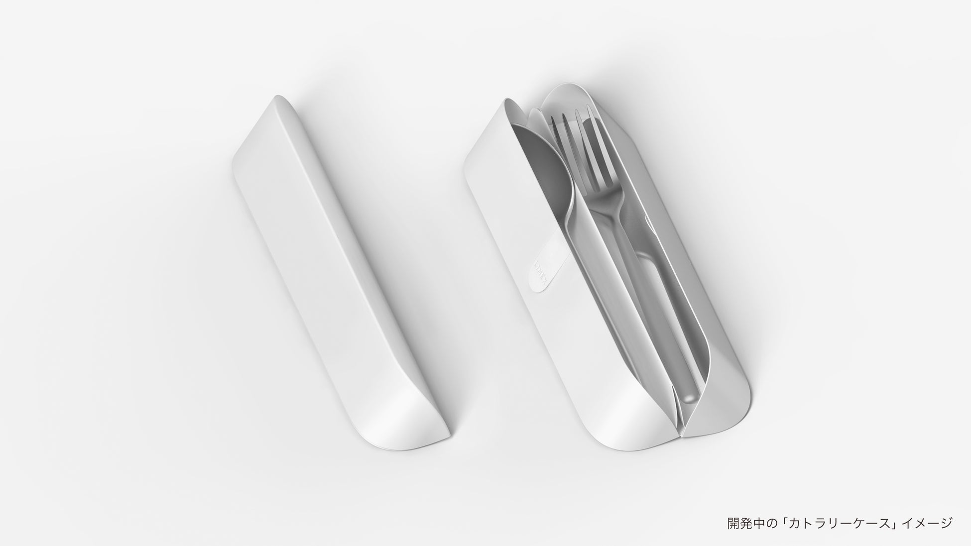 TBM 100とは、TBMが独自開発したリサイクル可能な新素材を用いた、100のプロダクトからなるオリジナルコレクション。2022年4月施行の通称「プラ新法」で制定された使い捨てカトラリーの一部有料化に伴い、「マイ・カトラリー」需要の増加を見据え、今春からカトラリーケースの展開を「ZAIMA」にて開始します。
