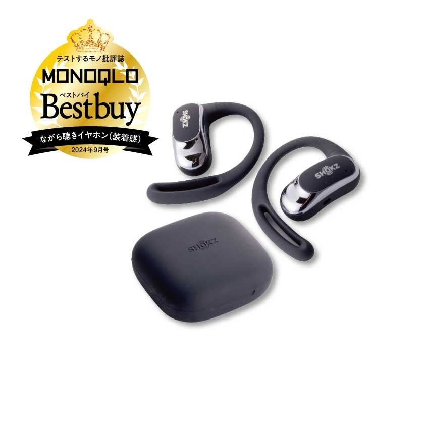 骨伝導イヤホンで有名な「Shokz」から発売された新製品。イヤーフックの素材が柔らかくて滑りにくいため、フィット感が良好です。中低音に厚みがあって解像度も高く、ボーカルのニュアンスまで伝わります。