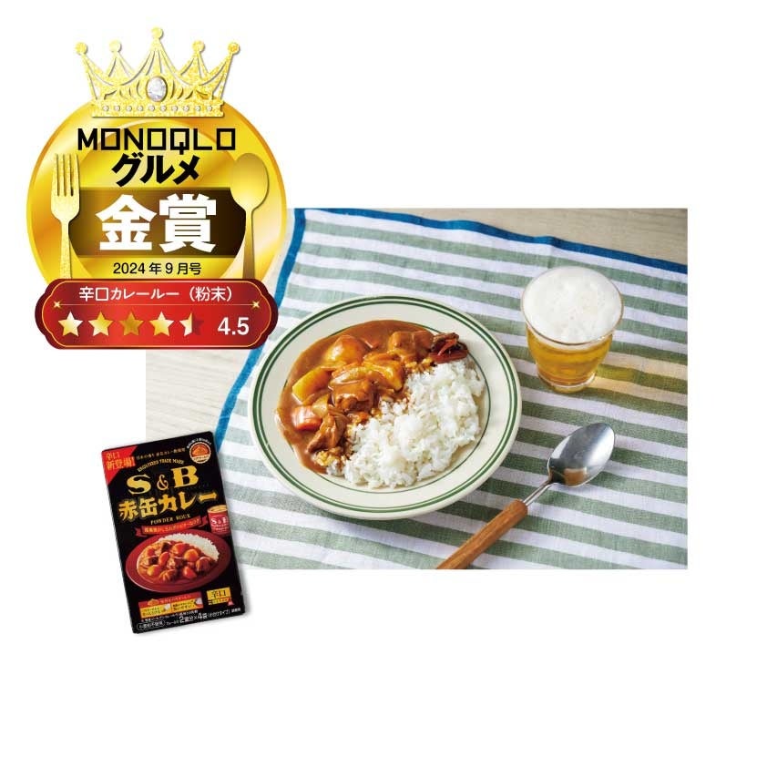 香りと品質の高さにこだわった、エスビー食品のロングセラー。スパイス(コリアンダー)の爽やかな香りが際立ち、ほどよい辛みが後を引きます。また、甘みや酸味、旨みが高い次元でまとまっていて、多くの人が食べた瞬間に「おいしい」と感じる味わい。テストの全項目で20製品中トップのスコアをたたき出し、見事金賞に輝きました。