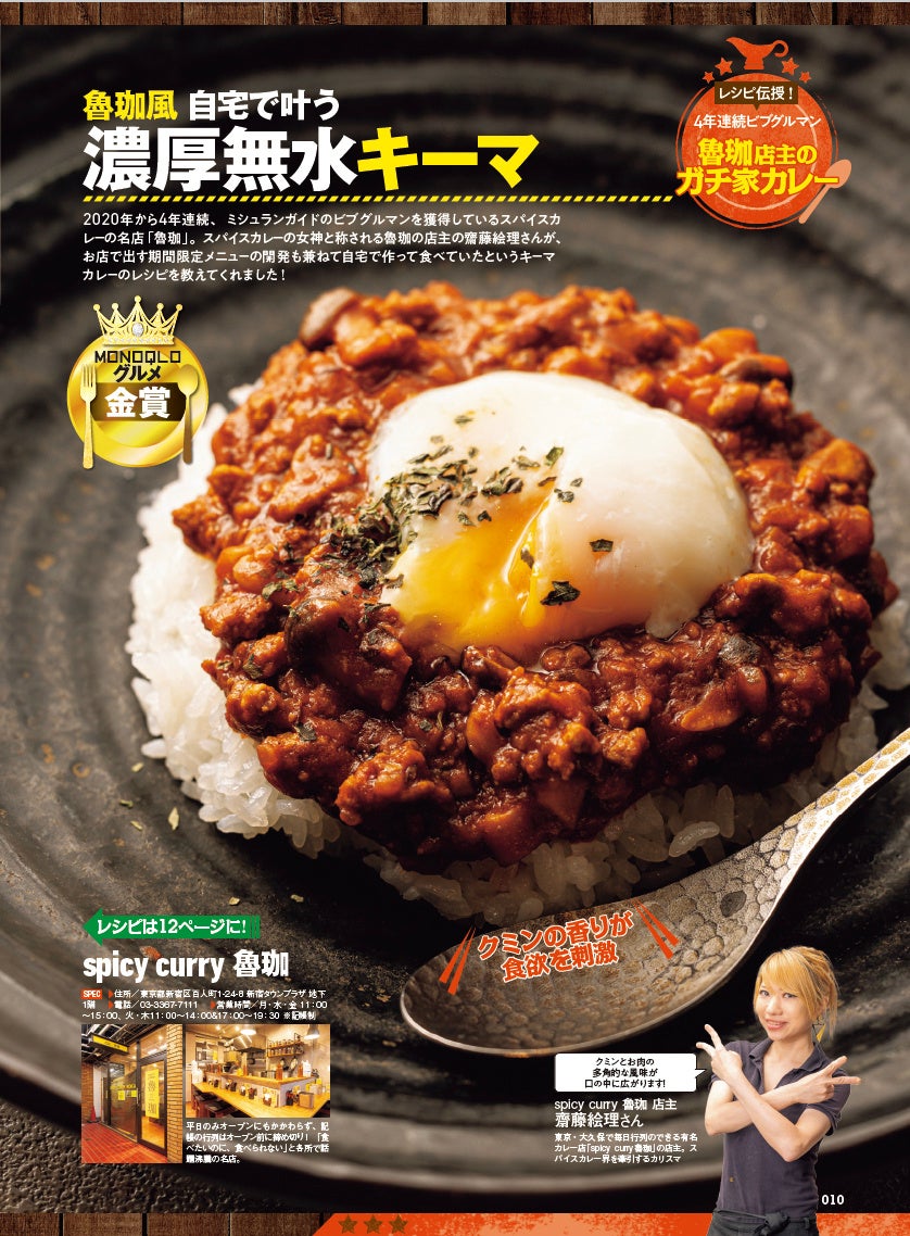 2020年から4年連続、ミシュランガイドのビブグルマンを獲得しているスパイスカレーの名店「魯珈」。スパイスカレーの女神と称される魯珈の店主の齋藤絵理さんが、お店で出す期間限定メニューの開発も兼ねて自宅で作って食べていたというキーマカレーのレシピを教えてくれました!