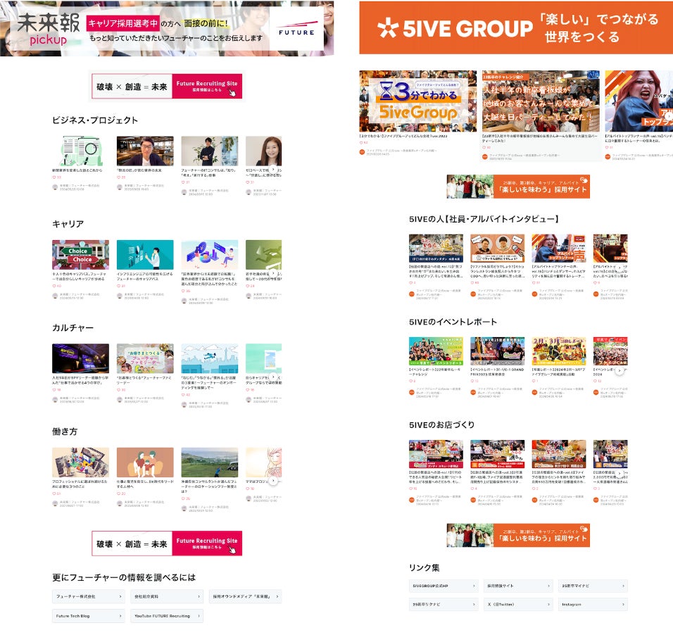 フューチャー株式会社 (左)/ 株式会社ファイブグループ(右)