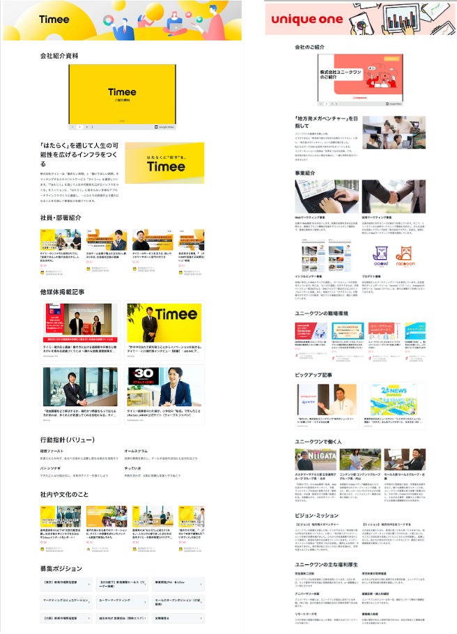 株式会社タイミー(左)/ 株式会社ユニークワン(右)