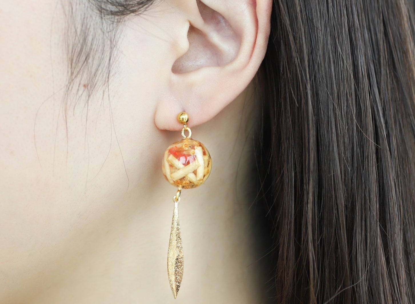 竹ひごがどこか和風な雰囲気を醸し出すピアス。ゴールドパーツを組み合わせ、上品な仕上がりに。ゆらゆら揺れるデザインが涼しげで、夏にもぴったり。
