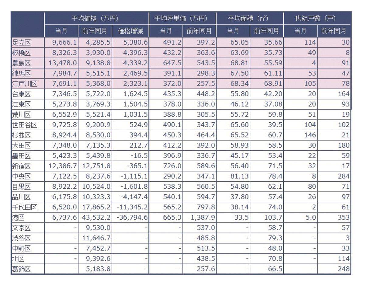 速報/月例新築マンション動向2月実績発表~足立区の平均価格変動率が前年同期比126%増~