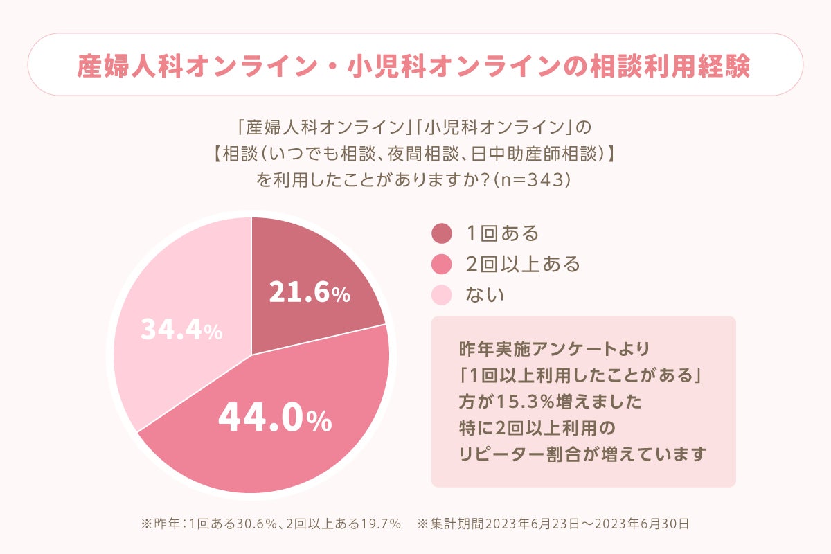 サービスご提供を開始した2022年の調査時と比べて、2023年のアンケートでは『産婦人科・小児科オンライン』を利用したことがある方が15.3%増えました