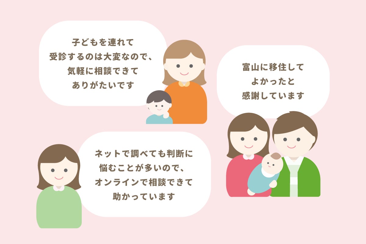 『産婦人科・小児科オンライン』導入によって、富山県にお住まいの方が無料でオンライン健康医療相談サービスをご利用いただけることが、安心して子育てができる環境づくりに繋がっていることと思われます。