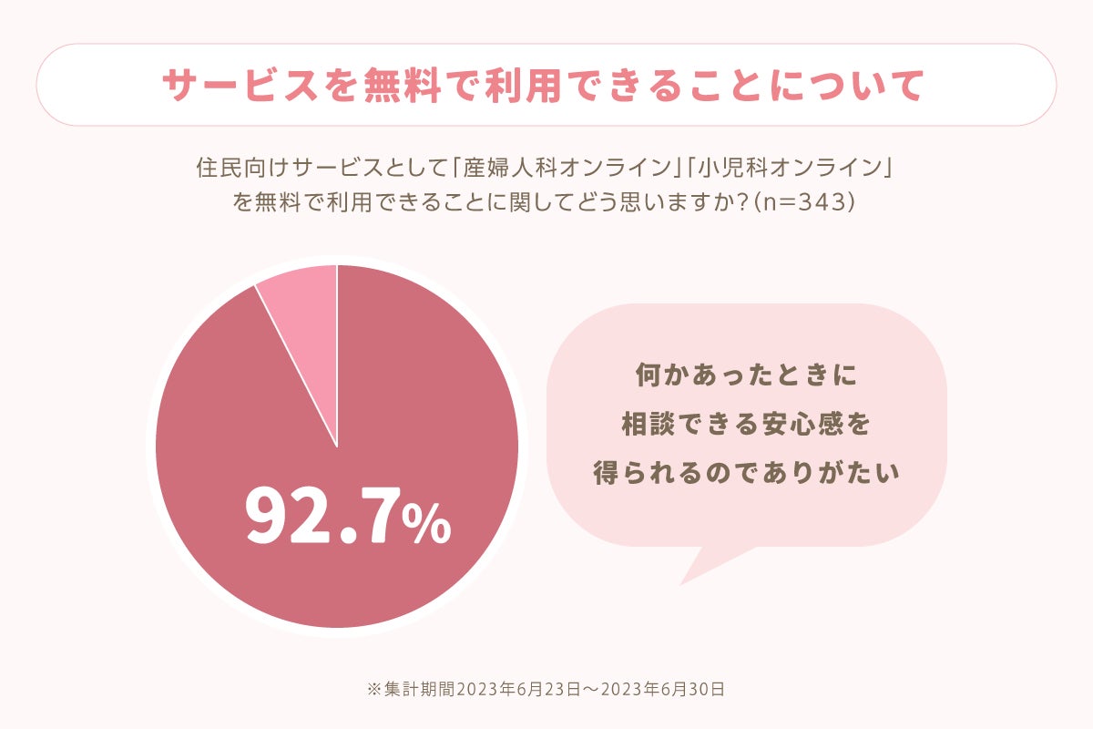 当サービスが使えることによって、「何かあったときに相談できる安心感を得られるのでありがたい」と回答された方が92.7%にのぼりました