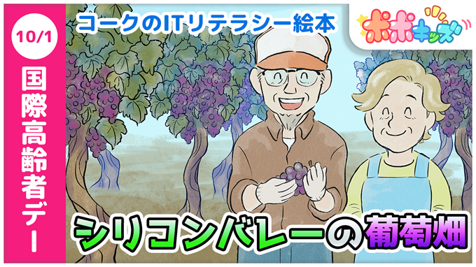 株式会社アイフリークモバイル(所在地:東京都新宿区、代表取締役社長:吉田 邦臣、以下 当社)は、当社が運営する、700冊以上の作品を収録する絵本アプリ「森のえほん館」において、永田浩一氏作の人気作品「コークの ITリテラシー絵本」シリーズの最新作、「国際高齢者デー」に関する絵本「シリコンバレーの葡萄畑(デジタルデバイド、フィッシングサイト)」を9月25日より配信開始しましたことをお知らせいたします。