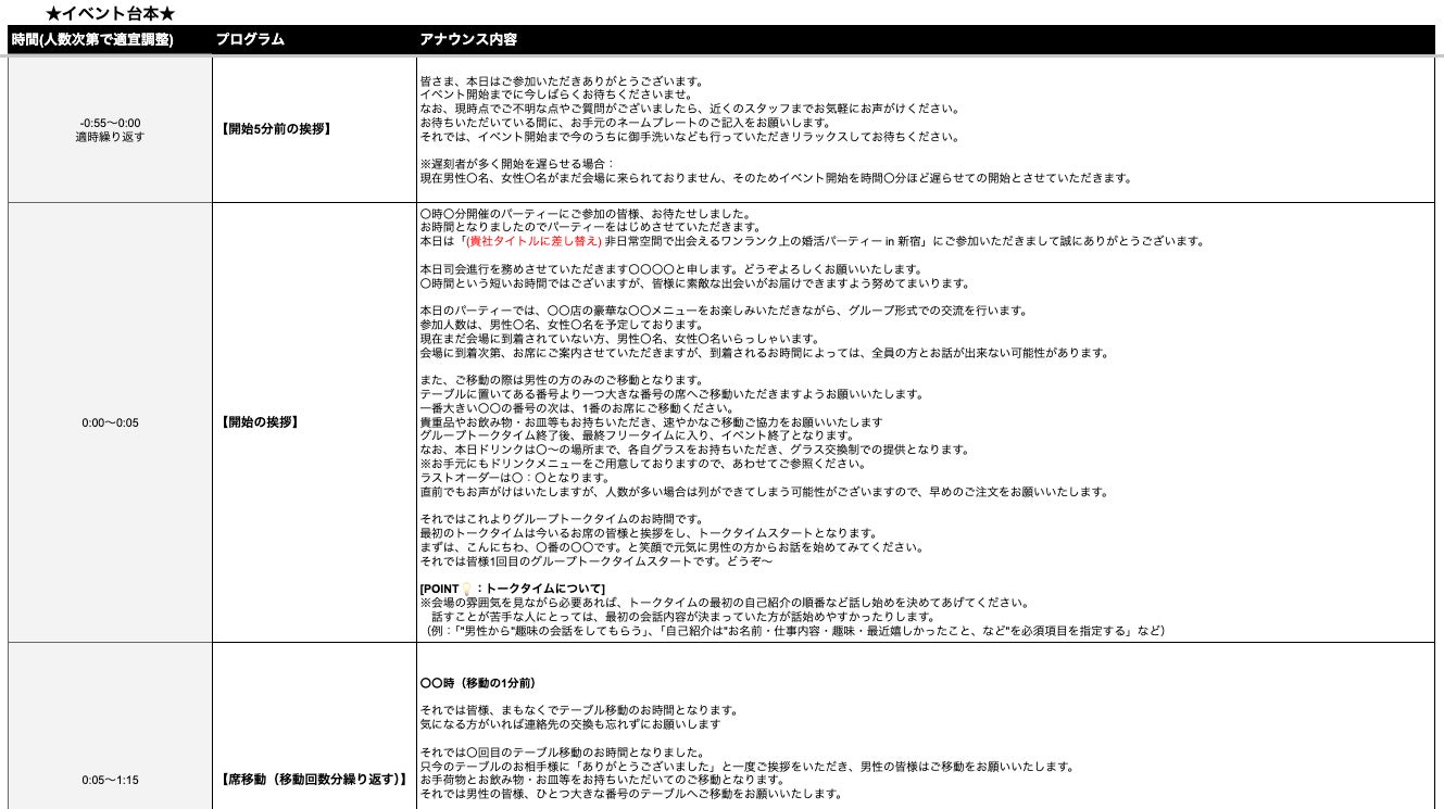 企画書・運営マニュアル・台本を一括提供。会員への新たな出会いの提供と、事業の柱としてのイベント運営をサポート