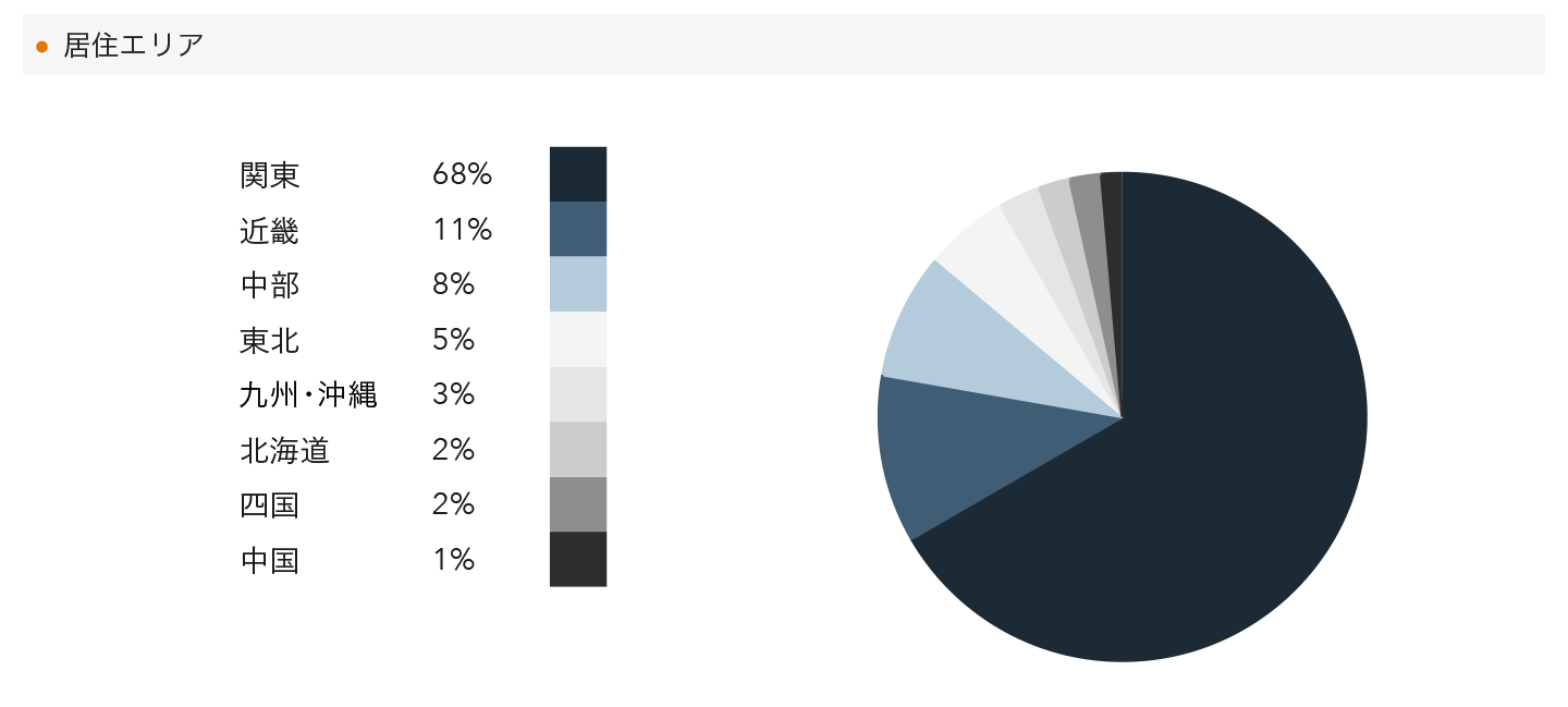 成約顧客の居住エリアのうち、最も割合が高いのは関東で68%(前月比1ptダウン)となり、続いて近畿11%、中部8%、東北5%、九州・沖縄3%、北海道2%、四国2%、中国1%となります。成約者が国内8つのエリアすべてに分布するのは5ヶ月連続となります。