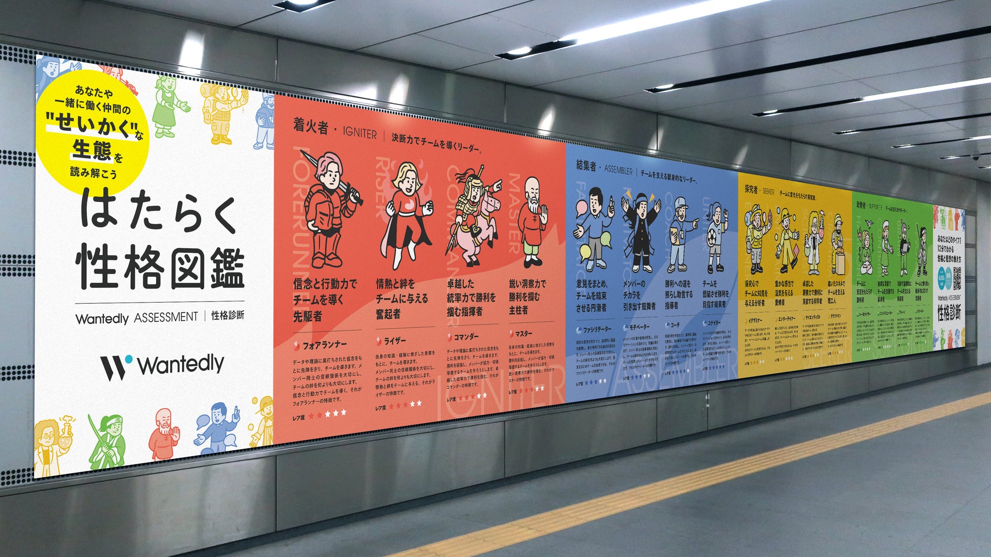 ビジネスSNS「Wantedly」を運営するウォンテッドリー株式会社は、2024年4月15日(月)に「はたらく性格図鑑」を公開します。また本書の公開を記念して、4月15日(月)より、渋谷駅で「はたらく性格図鑑フェア」を開催します。