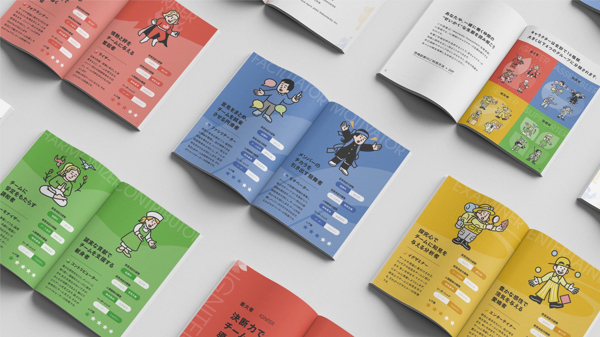 本書と性格診断を併せてご活用いただくことで、各キャラクターの性格や傾向を、正確に理解できます。自己理解はもちろん、チームに新たなメンバーを迎える際の、相互理解のためのツールとしてもお役立ていただけます。