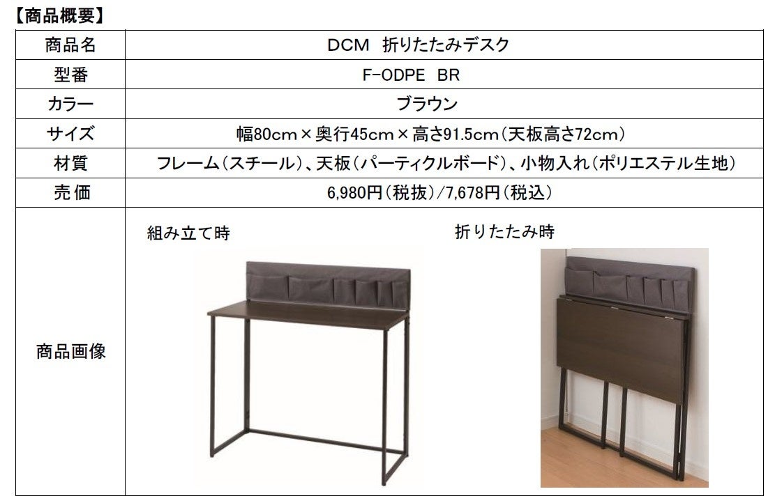 一定のサイズを確保しな がら、簡単に折りたためる「DCM 折りたたみデスク」新発売