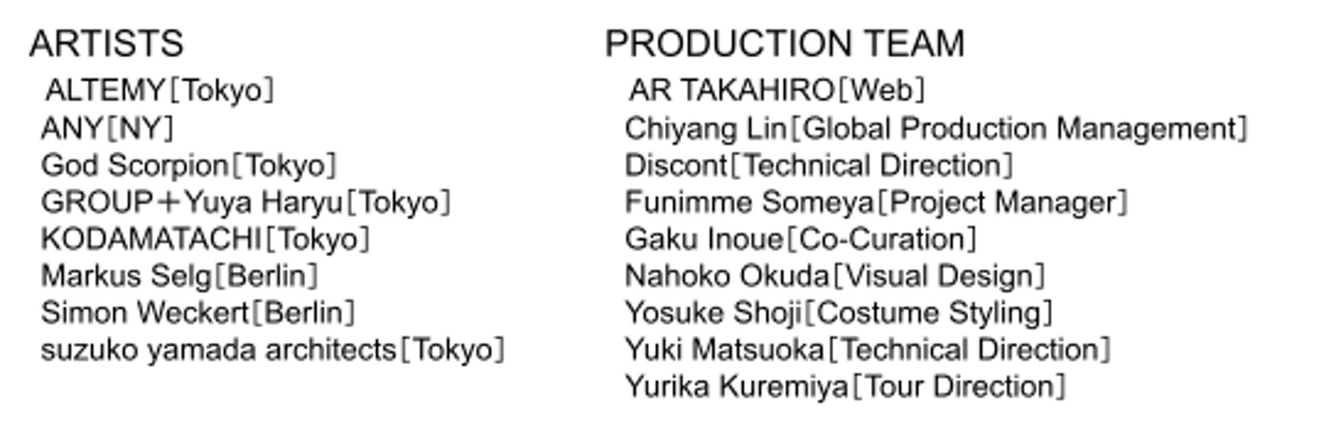 ・主催:東京都、公益財団法人東京都歴史文化財団 アーツカウンシル東京 シビック・クリエイティブ・ベース東京[CCBT]