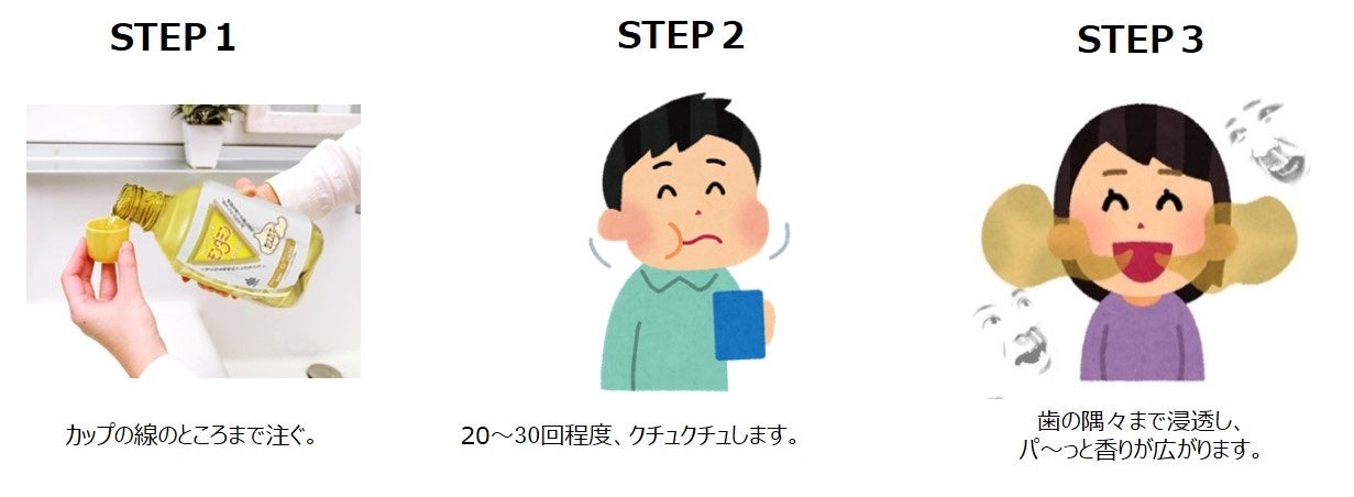 ※1:呼吸回数や飲食したもの(特に甘いものやハッカ等清涼感のあるもの)により、持続が短くなる場合があります。効果が感じられなくなった場合は、追加クチュしてください。