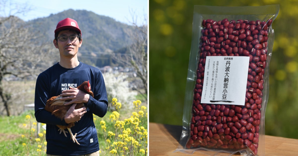 元々会社員をしていたが、農業研修を受け2019年に独立。農薬・肥料・除草剤・農業用資材マルチは使用せず、自然栽培で小豆を生産している。丹波大納言小豆は古くから兵庫県・京都府を中心に栽培される大粒な高級品種。
