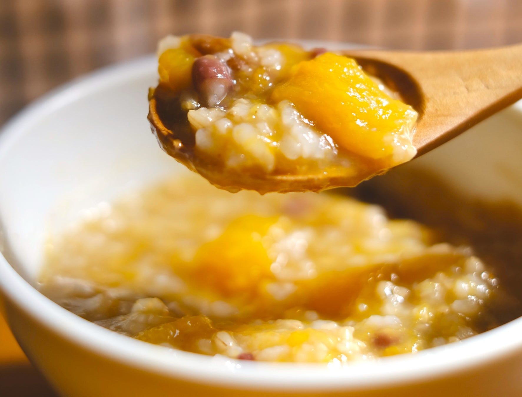 今回は「かぼちゃ」「小豆」「玄米」の3つの食材において生産者のこだわり食材を活用し、「日常的に食べても美味しい」と感じる味を追求しました。素材本来の味を活かしたまろやかな甘みを楽しむことができるスープ粥です。