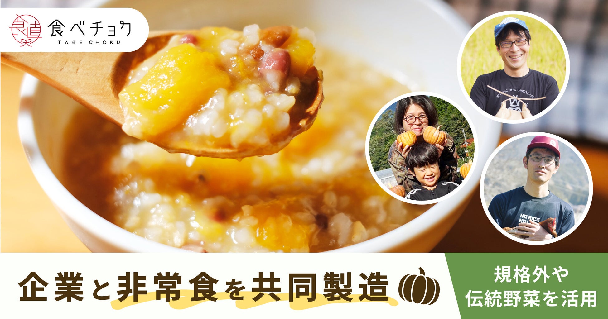 「食べチョク一次産業SDGsプロジェクト」の1つとして、賛同企業のSBI FXトレード株式会社と共同で生産者の食材を活用した非常食の製造を開始しました。廃棄となる可能性のある食材を同社が買い取り食べチョクと共同で非常食を製造することで食品ロスの削減に貢献します。作られた非常食は同社の会員への提供や、非常時のための社内備蓄などに活用されます。