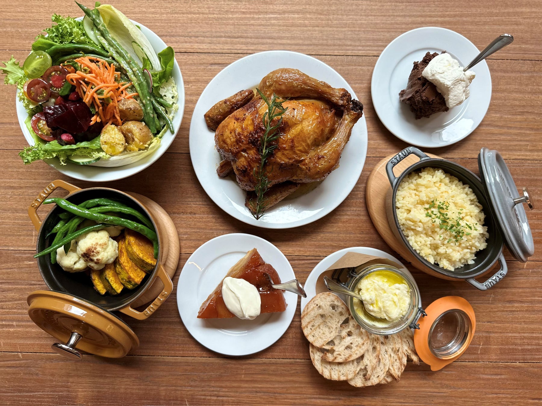 シェフズサラダ、ブランダード、メインに若鶏のロースト スタッフィングライスなどを詰め合わせたホリデーシーズン限定のテイクアウトセットです。