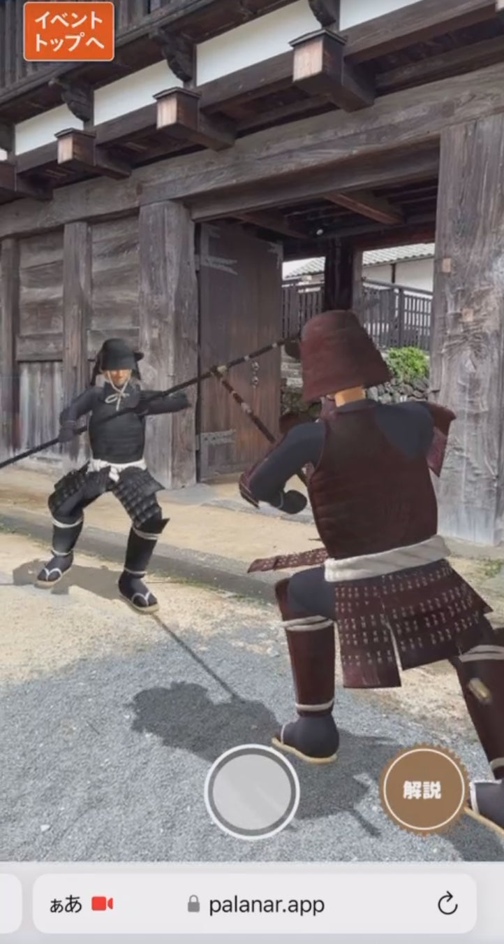 兵士が合戦している様子を出現させることができるARになります。城跡などに合わせて見ることで臨場感のある体験することが可能です。