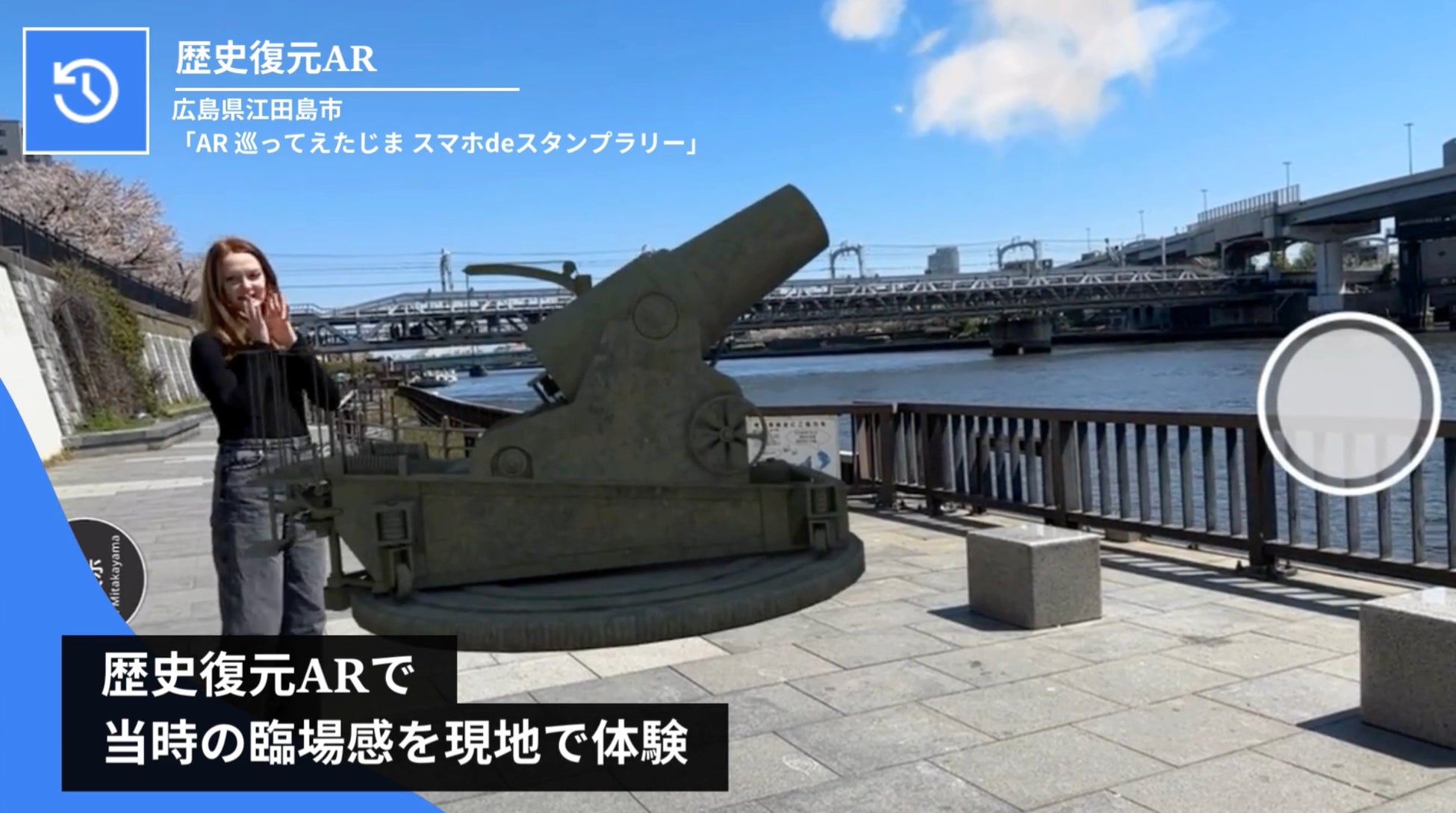 アプリダウンロードの必要がなく、1つの地図から複数のAR観光スポットを楽しむことができます。