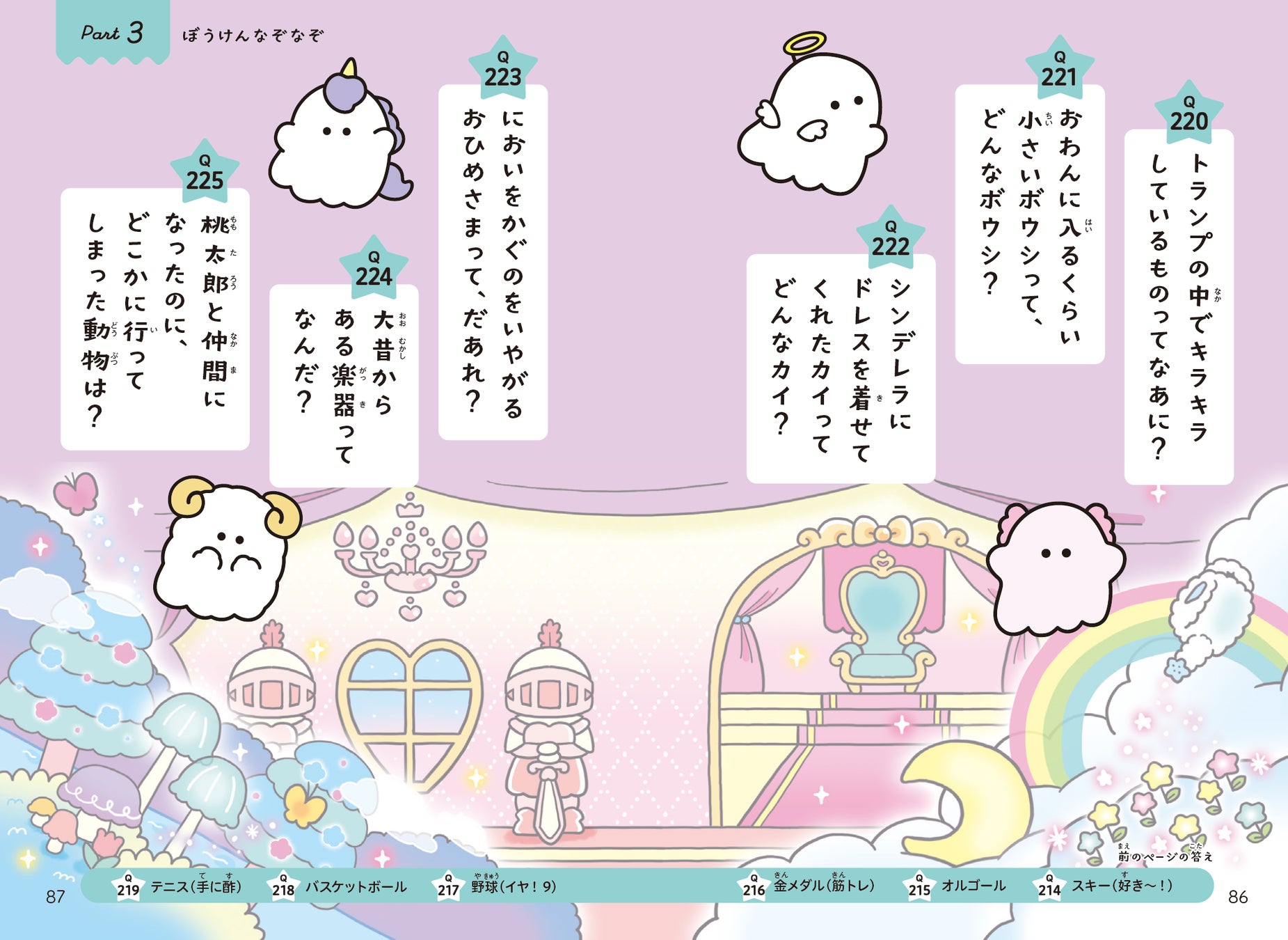書籍化第2弾となる本書は、オバケーヌのかわいいキャラクターといっしょに、小学生が大好きななぞなぞを楽しめます。なぞなぞは全部で314問。オバケーヌキャラにまつわるなぞなぞや、キャラ図鑑も収載されています。ひとりで頭をひねってもよし、友だちや家族となぞなぞを出し合っても盛りあがること間違いなし。キュートなイラストも盛りだくさんです。