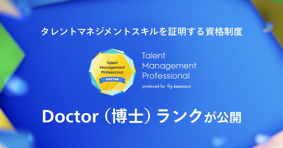 株式会社カオナビ(本社:東京都渋谷区、代表取締役社長 Co-CEO:佐藤 寛之、以下:当社)が提供するタレントマネジメントシステム「カオナビ」は、タレントマネジメントのスキルを証明する資格制度「Talent Management Professional」において、最上位ランク「Doctor(博士)」の試験を、2025年3月28日(金)より公開します。