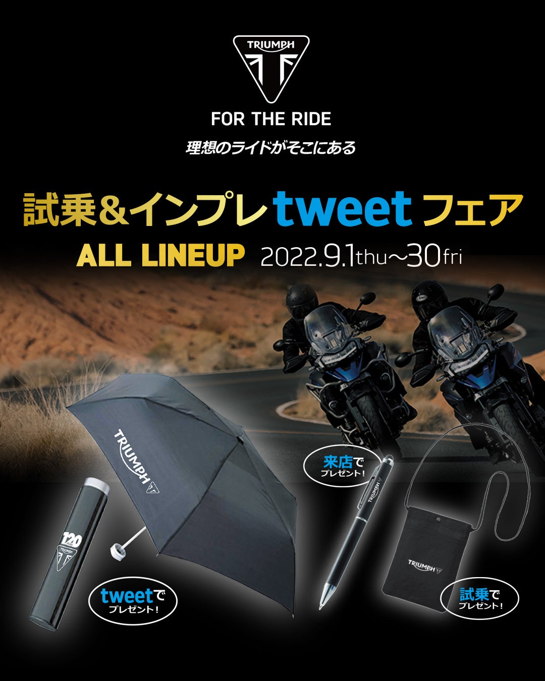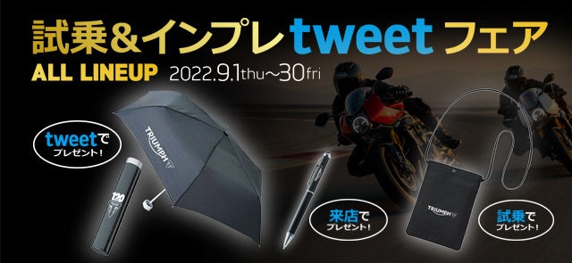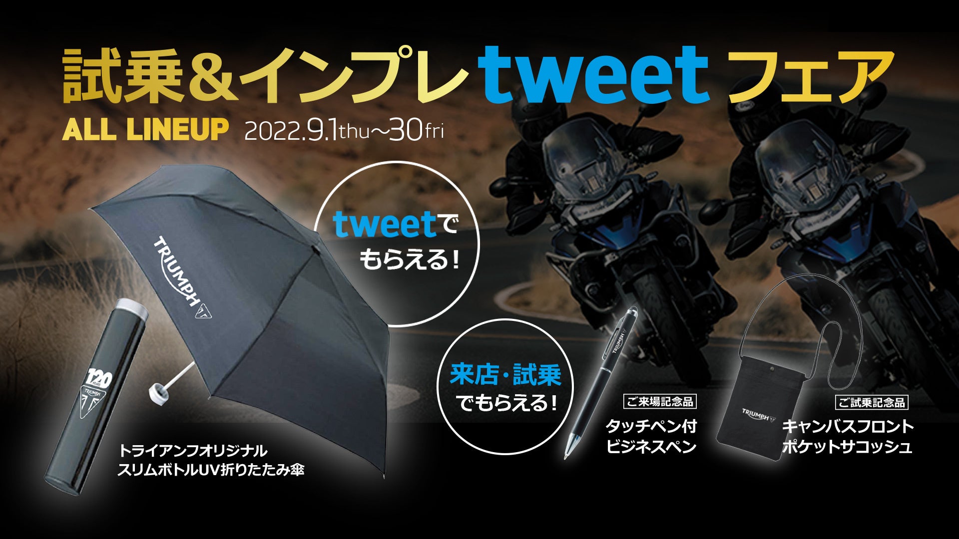 更に今回特別に、ご試乗した感想をTwitterでtweetされた方を対象として、通常のご試乗記念品とは別に【スリムボトルUV折りたたみ傘】をプレゼントいたします。
