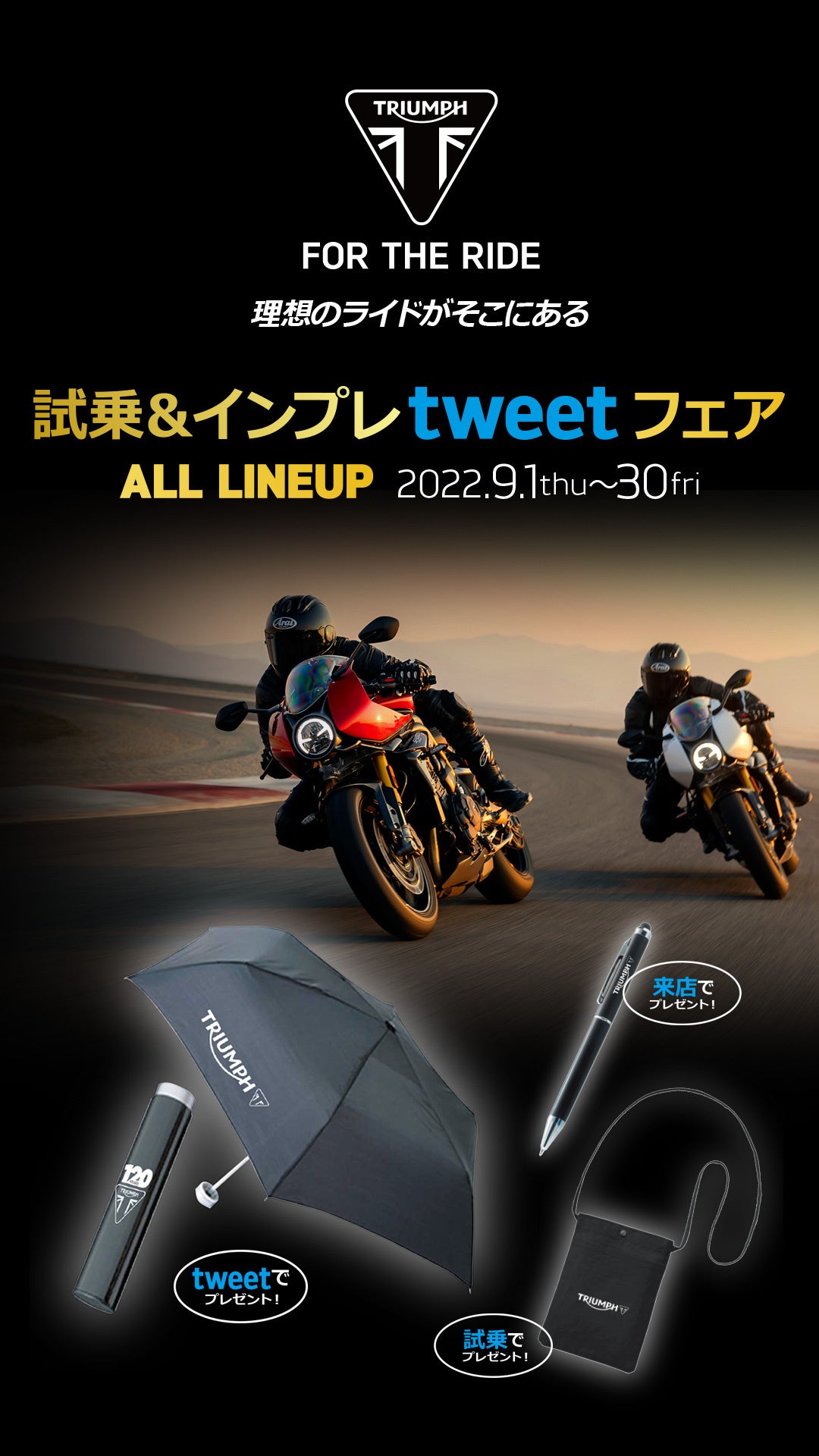 暑さが和らぎバイクシーズンの始まりを予感させる9月初秋、ぜひこの機会にご来場いただき、Modern Classicから最新Adventureまで、新型車両や新色が登場しているトライアンフの魅力をご確認下さい。