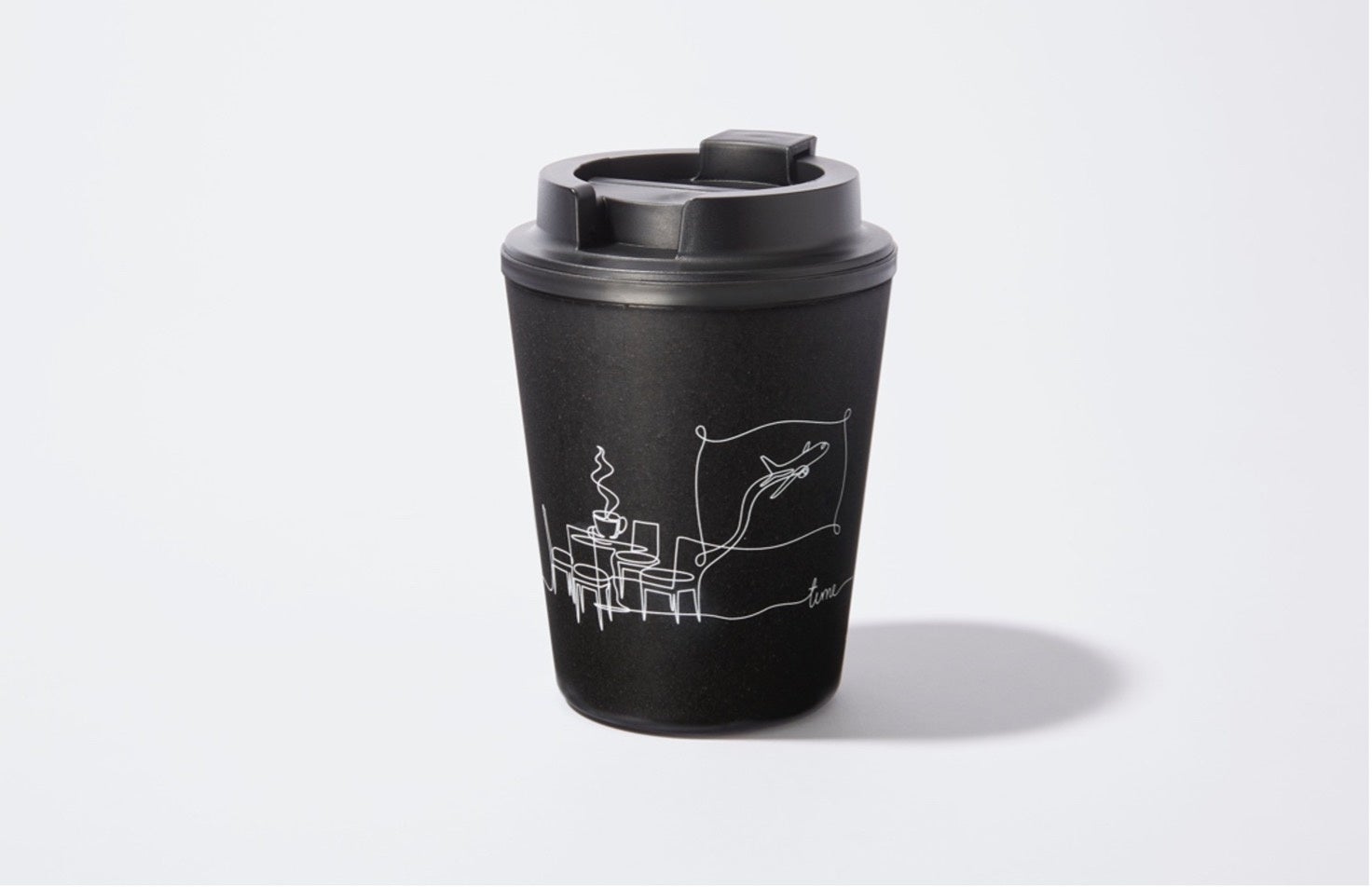 抽出後のコーヒー粉を30%使用したオリジナルタンブラーは、羽田空港JAL国内線ラウンジや、日本航空オフィスビルのカフェより回収し、製造されたものです。タンブラー内部は二重構造のため汗をかきづらく、ホットドリンクでもスリーブなしで持つことが可能なアイテムです。
