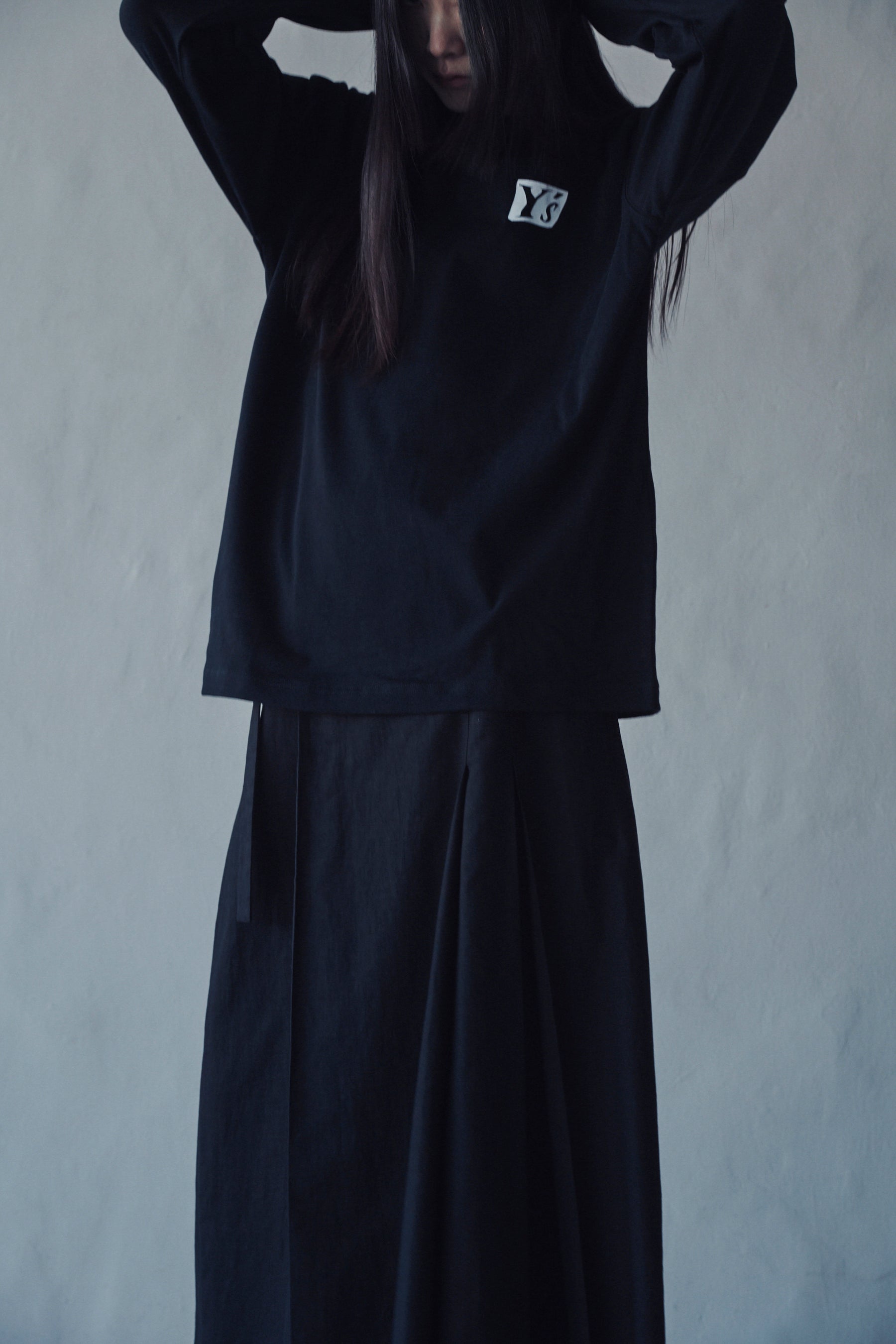 ロングスリーブTシャツの胸元に配された、Y'sデザインチームが手がけた新たな「Y's」アイコン。手描きのようにも見え、グラフィティ手法の1つであるステンシルの型のようにも思えるハンドクラフト感のあるグラフィックが、ストリートとの出会いを新鮮に演出しています。