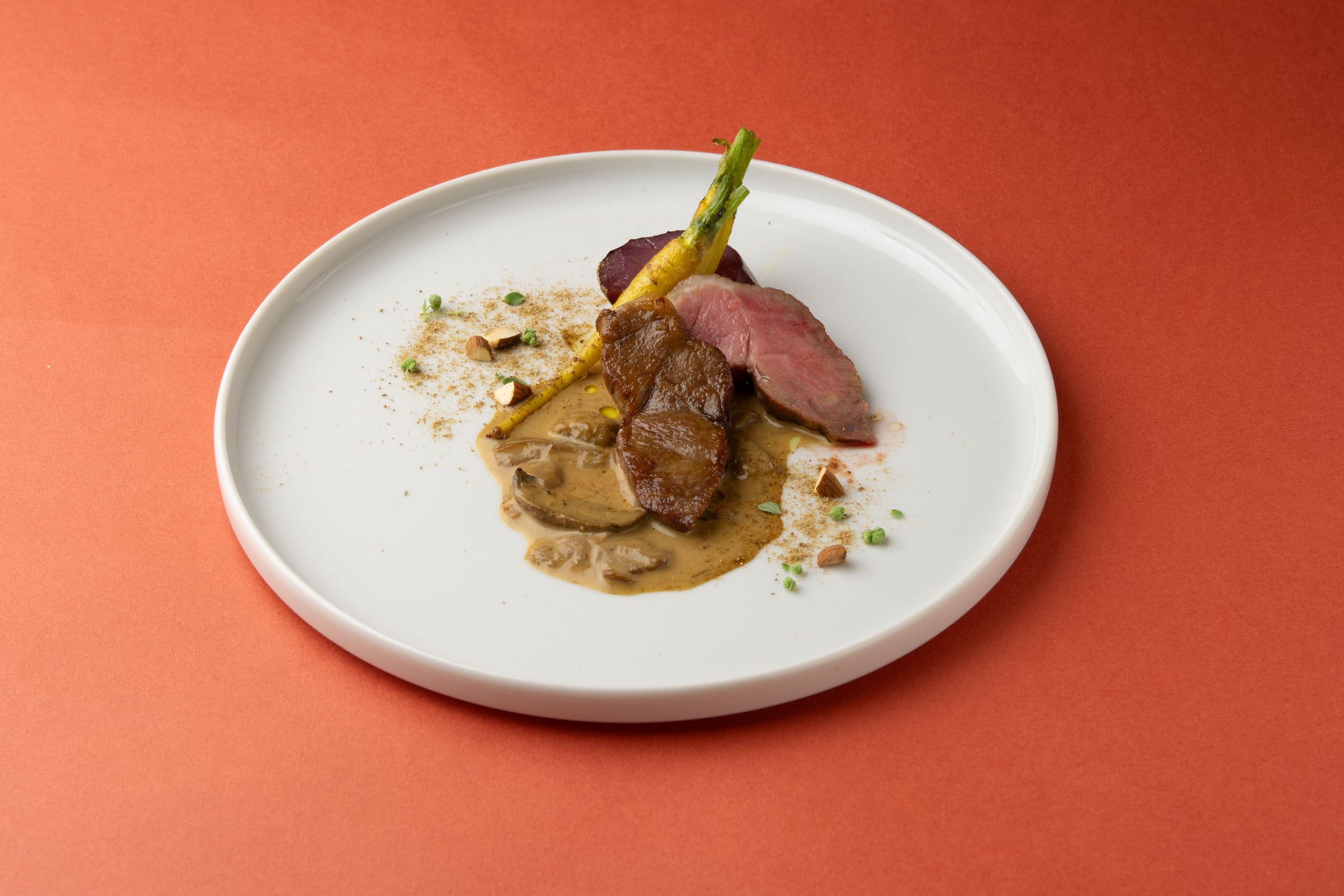 味わい深い天草産梅肉ポークを低温でじっくりと焼き上げ、濃厚なポルチーニ茸のクリームソースを合わせました。