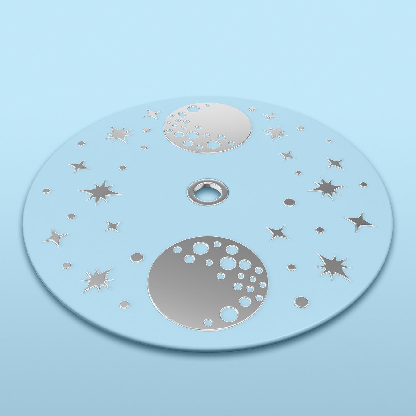 月の光が夜空を彩るように、ムーンフライトのダイヤルはスカイブルーやグレイッシュトーンなど