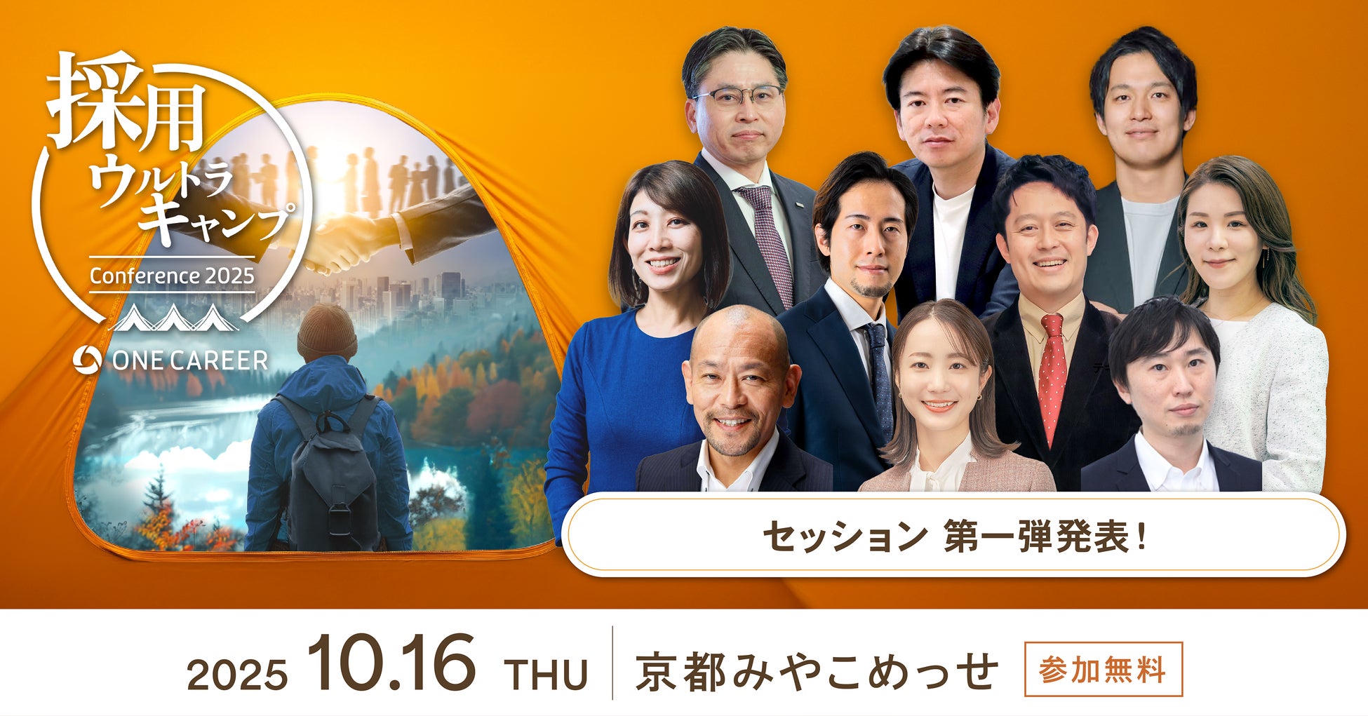 人事向け採用クラウド「ONE CAREER CLOUD」を展開する株式会社ワンキャリア(本社:東京都渋谷区、代表取締役社長 執行役員CEO:宮下 尚之、以下「ワンキャリア」)は、2025年10月16日(木)に京都市勧業館 みやこめっせ(京都府京都市左京区)で開催される当社初の採用担当者向け大型カンファレンス『採用ウルトラキャンプ』の第一弾セッション・登壇者を決定しました。