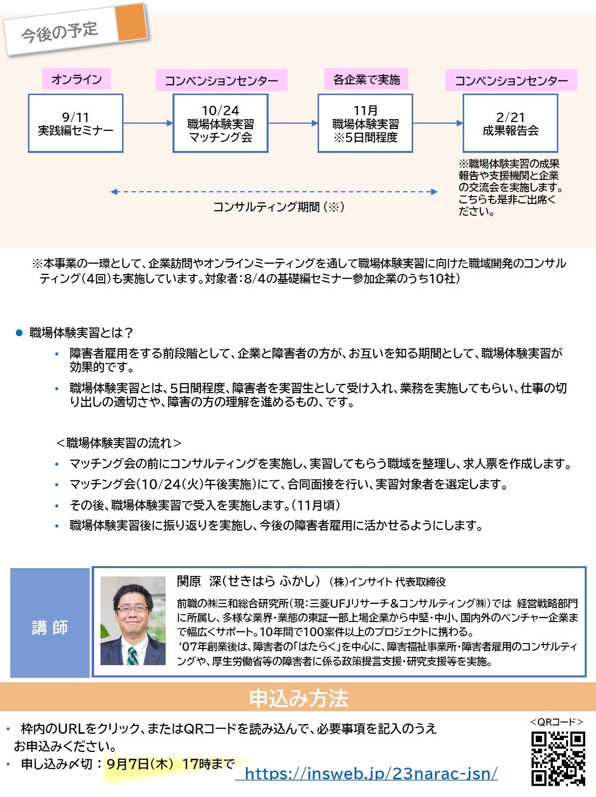 本セミナーの開催後も、障害者雇用に初めて取り組む企業から、更に質を高めた障害者雇用をしたい企業まで幅広い目的に対応したイベントを実施予定です。