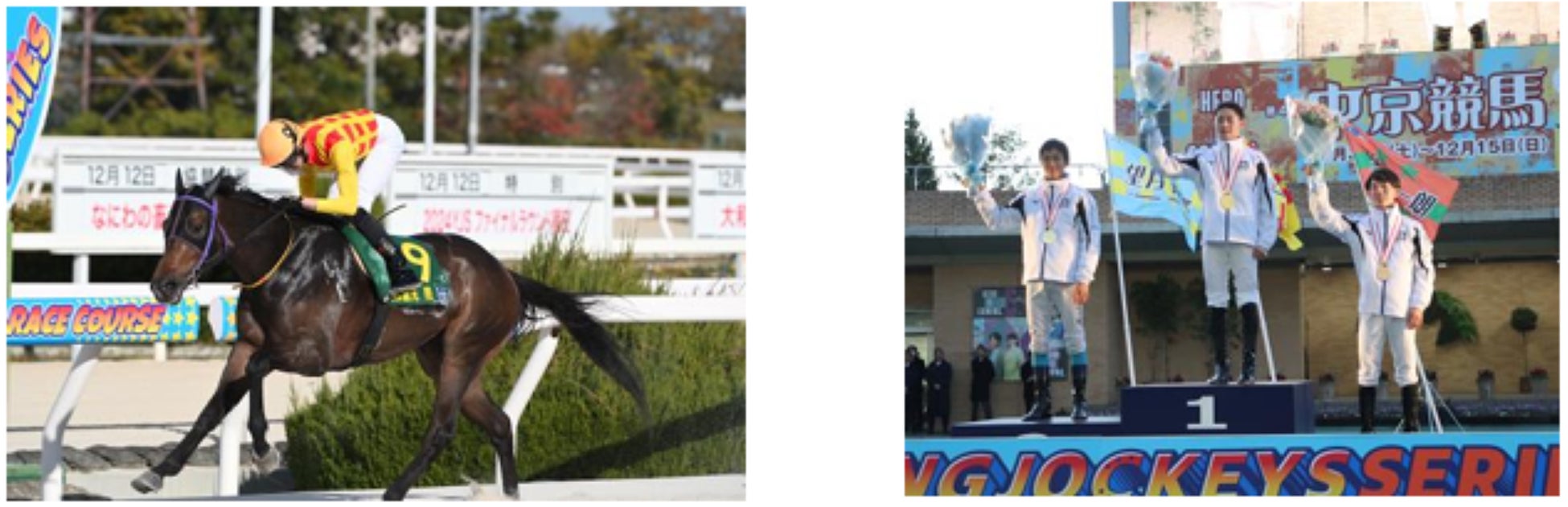 東京シティ競馬(TCK)では、ヤングジョッキーズシリーズトライアルラウンドを勝ち上がった地方競馬およびJRAの代表騎手がシリーズチャンピオンの座を競い争われた「2024ヤングジョッキーズシリーズファイナルラウンド」が12月12日(木)園田競馬場、12月14日(土)JRA 中京競馬場で行われ、TCK所属の鷹見 陸騎手が総合優勝いたしましたので、お知らせいたします。