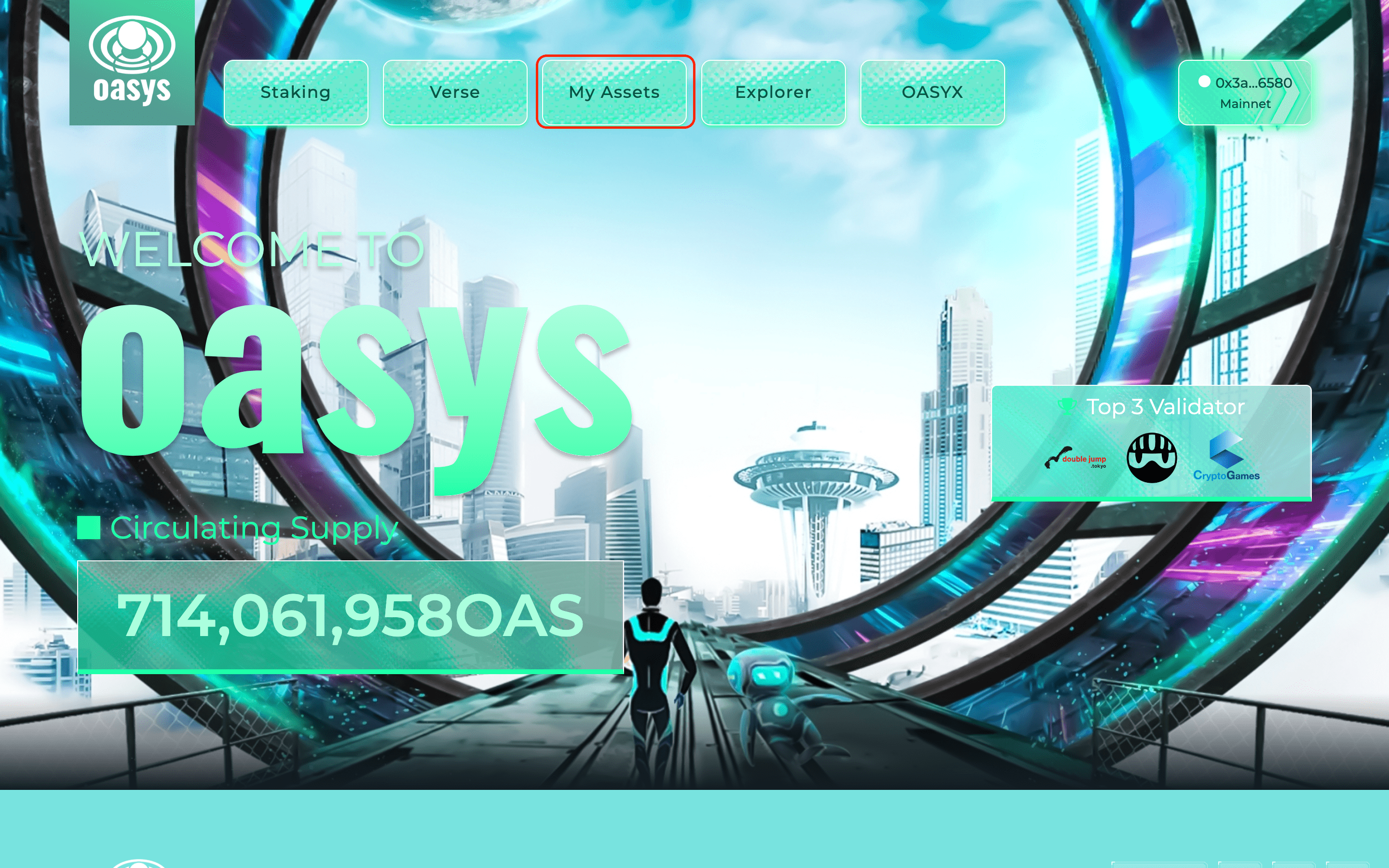 手順①Oasys Hubにてご自身のウォレットを接続し、My Assetsを選択