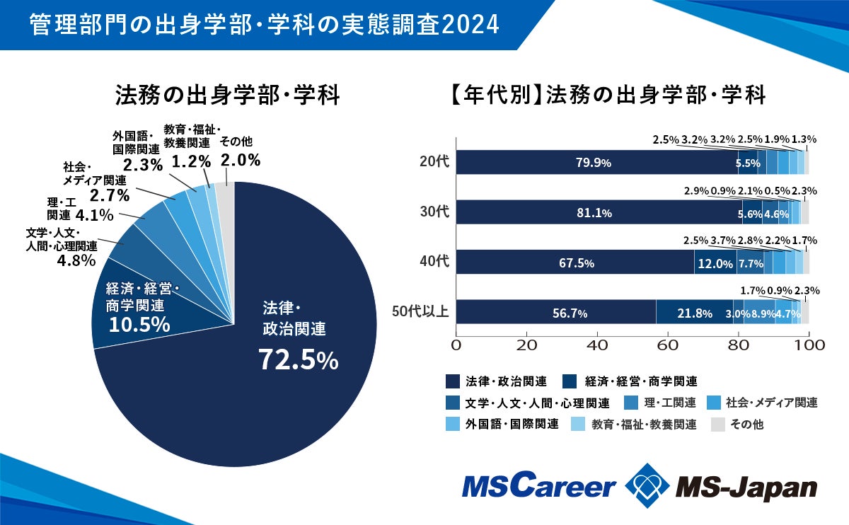 株式会社MS-Japan(本社:東京都千代田区 代表取締役会長兼社長CEO:有本隆浩/以下MS-Japan 証券コード:6539)が運営する、管理部門・士業の総合転職サービス「MS Career(エムエスキャリア)」は、「管理部門の出身学部・学科の実態調査2024」を発表しましたので、お知らせいたします。本調査は、2023年1月1日~2023年12月19日にMS Careerが提供する人材紹介サービス「MS Agent」に登録された大学・大学院卒の転職希望者のデータから、実態についてまとめたものです。