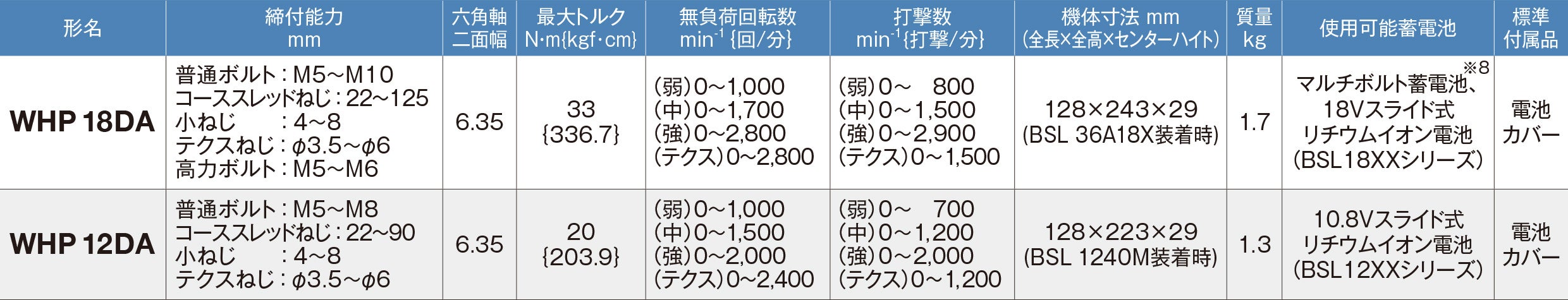 【コードレス静音インパクトドライバ WHP 12DA】 【コードレス静音インパクトドライバ WHP 18DA】