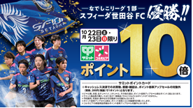 サミットがスポンサー契約をするスフィーダ世田谷FCが、「2022年なでしこリーグ1部」において、見事、初優勝を果たしました。応援していただいた皆さまへの感謝の気持ちと優勝を記念して、10月22日(土)・ 23日(日)の2日間、ポイントアップセールを実施いたします。