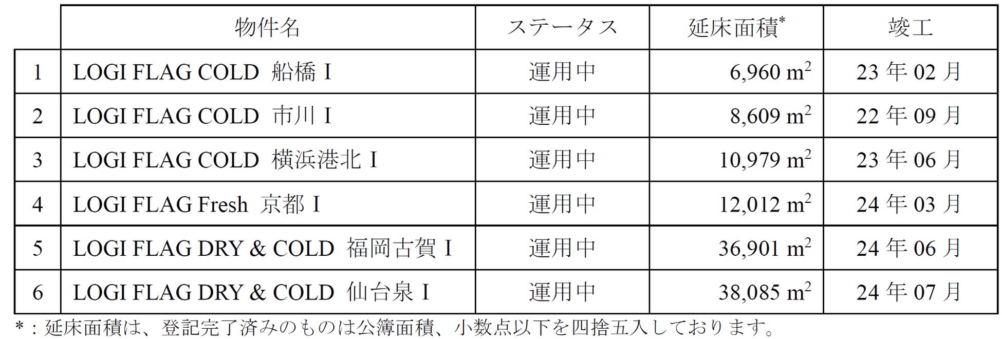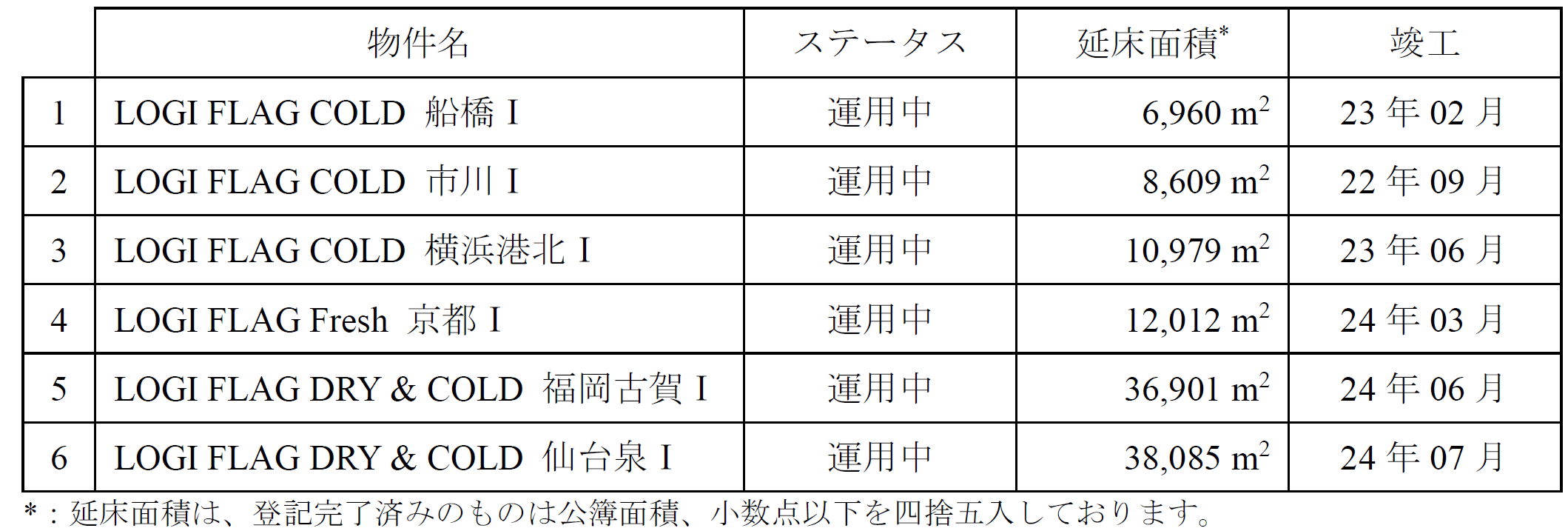 また、本件の開発期間中におけるサブアセットマネジメント業務につきましては、当社子会社であるロジフラッグ・デベロプメント株式会社(本社:東京都千代田区、代表取締役:本間智宏)が受託し、当社と連携して物流施設の開発を進めてまいります。